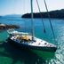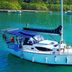 The boat features 4 bedrooms, a flat-screen TV, an equipped kitchen with a microwave and a fridge, a washing machine, and 1 bathroom with a shower.