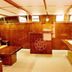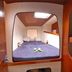 The boat consists of 4 separate bedrooms, 1 bathroom, and a seating area.