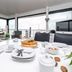 The modern boat has 4-bedrooms and a lounge area with a dining table and flat-screen TV. Kitchen facilities include a stove, dishwasher and fridge. The boat also has a bathroom with shower.