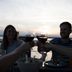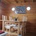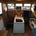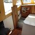 The boat includes a small kitchenette with a stovetop, as well as a seating/dining area. Guests have access to bathroom facilities located in the immediate vicinity.