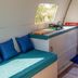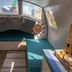 The boat has 1 bedroom, a living room, and a kitchenette with a dining area and a stovetop. Guests wishing to travel lightly can make use of towels and linens for an additional supplement.