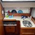 A kitchenette with a microwave, a coffee machine and a refrigerator is available on the boat.