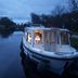 The boat has 1 separate bedroom and includes a kitchenette with a microwave, fridge and dining area.