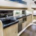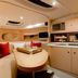 Featuring a DVD player, the boat has a kitchen with a fridge, an oven and a stovetop, a living room, a dining area, 2 bedrooms, and 2 bathrooms with a shower. A flat-screen TV is featured.