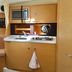 The kitchen is equipped with a stove, a microwave and kitchenware. A fridge is also available.