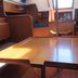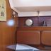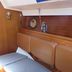 The boat is equipped with 1 separate bedroom and includes a kitchen with a fridge, stovetop and dining area.