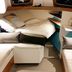 The boat includes a seating area with a flat-screen TV, a dining area and a fully equipped kitchenette with a dishwasher and a microwave. There is also a modern bathroom with a shower and a hairdryer is also provided.