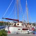The hosts live on the boat. The cabin is fitted with a double bed and there is a shared toilet. Guests have access to a paid shower in the harbour.