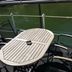The boat is equipped with 2 bedrooms, 1 bathroom, a flat-screen TV with satellite channels, a dining area, a fully equipped kitchen, and a patio with lake views.
