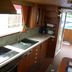 The boat includes 1 bedroom, 1 bathroom with a shower, a seating area, and a kitchen with a fridge.