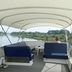 The boat is equipped with 2 bedrooms, 1 bathroom, a flat-screen TV with satellite channels, a dining area, a fully equipped kitchen, and a patio with lake views.