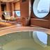 The boat is equipped with 2 bedrooms, 1 bathroom, a flat-screen TV with satellite channels, a dining area, a fully equipped kitchen, and a patio with lake views.