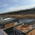 The boat is equipped with 2 bedrooms, 1 bathroom, a flat-screen TV with satellite channels, a dining area, a fully equipped kitchen, and a patio with lake views.