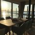 The boat is equipped with 2 bedrooms, 1 bathroom, a flat-screen TV with satellite channels, a dining area, a fully equipped kitchen, and a patio with lake views.