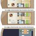 The boat includes 3 bedrooms, 1 bathroom with a shower, a seating area, and a kitchen with a fridge.