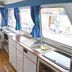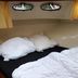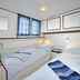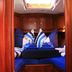 The boat includes 3 bedrooms, 1 bathroom with a shower, a seating area, and a kitchen with a fridge.
