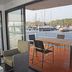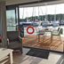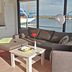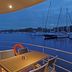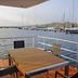 The boat is equipped with 2 bedrooms, 1 bathroom, a flat-screen TV with satellite channels, a dining area, a fully equipped kitchen, and a patio with lake views.