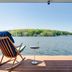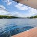 The boat is equipped with 2 bedrooms, 1 bathroom, a flat-screen TV with satellite channels, a dining area, a fully equipped kitchen, and a patio with lake views.