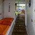 The boat includes 3 bedrooms, 1 bathroom with a shower, a seating area, and a kitchen with a fridge.