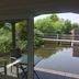 The boat is equipped with 2 bedrooms, 1 bathroom, a flat-screen TV with satellite channels, a dining area, a fully equipped kitchen, and a patio with lake views.