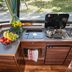 There is a small kitchenette on-board which includes a refrigerator, stove and storage space for groceries. Barbecue facilities are also available for when you are on dry land.