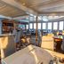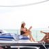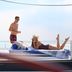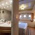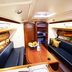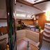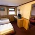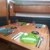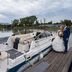 The boat has 2 separate bedrooms and includes a kitchenette with a fridge, oven and dining area.