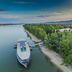 The boat with a patio and lake views features 1 bedroom, a living room, a flat-screen TV, an equipped kitchen with a microwave and a fridge, and 1 bathroom with a shower.