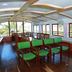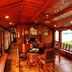 The houseboat docks in the evenings by the side of the lake. Guests can enjoy a ride on a canoe through the backwaters or play indoor games in the houseboat.