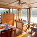 Each houseboat consists of two to four bedrooms with attached bathroom and toilet. Rooms are equipped with a fan, wardrobe and hot/cold shower facilities. The houseboats come with a small shared kitchenette, a common dining area, and living room that include sofa and TV.