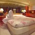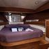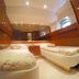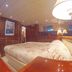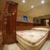 The boat includes 4 bedrooms and a living room with a flat-screen TV.