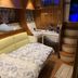 The boat includes 4 bedrooms and a living room with a flat-screen TV.