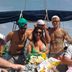 The boat includes 4 bedrooms and a living room with a flat-screen TV.