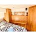 The boat includes 1 bedroom and a living room with a flat-screen TV.
