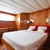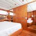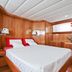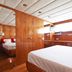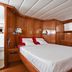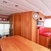The boat includes 4 bedrooms and a living room with a flat-screen TV.