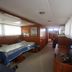 The boat includes 4 bedrooms and a living room with a flat-screen TV.