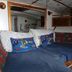 The boat includes 4 bedrooms and a living room with a flat-screen TV.