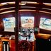 The boat includes 4 bedrooms and a living room with a flat-screen TV.