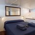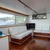 The boat includes 4 bedrooms and a living room with a flat-screen TV.