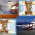 The boat includes 4 bedrooms and a living room with a flat-screen TV.