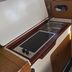 This two-cabin boat features an equipped kitchenette and a bathroom.