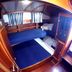 The boat includes 4 bedrooms and a living room with a flat-screen TV.