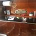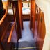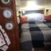 The boat includes a bedroom, a bathroom, and a living area with a small kitchenette.