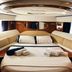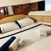 The boat includes 4 bedrooms and a living room with a flat-screen TV.