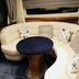 This two-cabin boat comes with a living room and a bathroom with free toiletries.