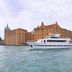 The Sarah Sun yacht is docked on one side of Sacca Fisola, a small island connected to Giudecca Island.
