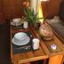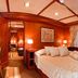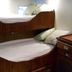 Cabins on a boat include air conditioning, a free bottle of water and shared bathroom.