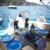 The boat offers a shared deck and shared lounge area. Guests can go snorkelling and fishing nearby.