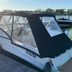 The boat includes 2 bedrooms, 1 bathroom with a shower, a seating area, and a kitchen with a fridge.
