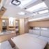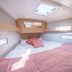 The boat consists of 4 separate bedrooms, 1 bathroom with a hairdryer, a seating area, and a living room.