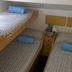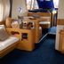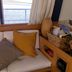 The boat consists of 4 separate bedrooms, 1 bathroom with a hairdryer, a seating area, and a living room.